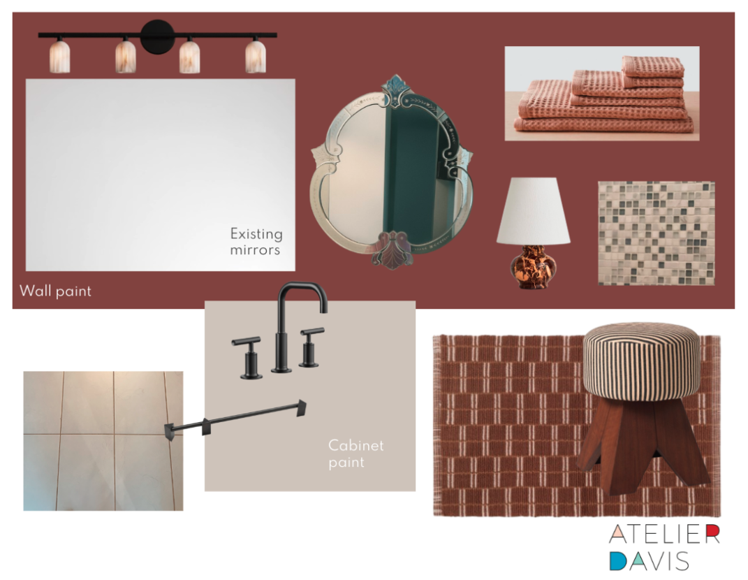 Team Atelier Davis is working on a refresh for a returning client’s primary suite. We already shared the updated bedroom design options, and now we’re turning our attention to the bath. The goal here: honor what’s already working while layering in fresh color, texture, and form. Both schemes keep the existing floor tile and mirrors,... Read more
