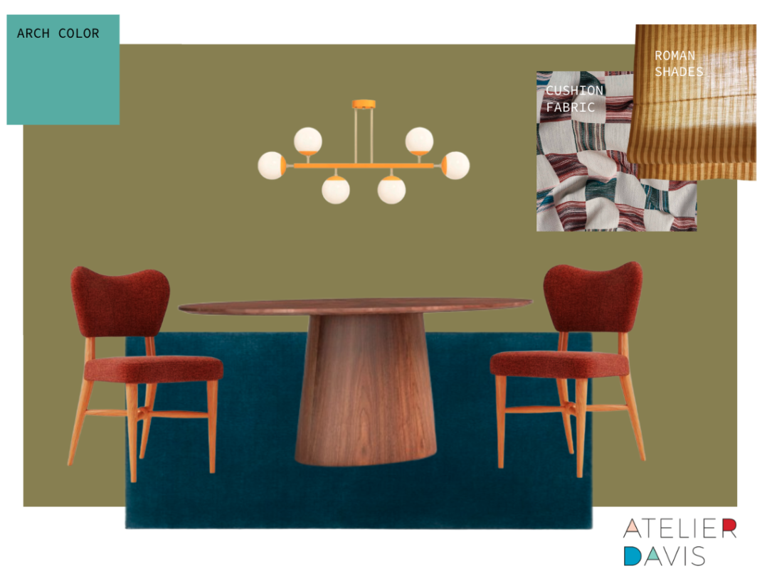 Team Atelier Davis is working on a new project in Decatur, Georgia, and last week we shared two color-forward schemes for the living room. This week we’re moving into the dining room, where bold wall and arch combinations keep the story going. Each pairing connects back to the living room, but with its own personality.