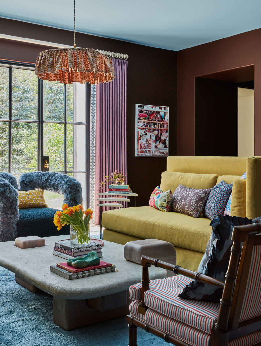 If you’re ready to commit, go tonal. Layer multiple shades—lavender, plum, bordeaux—within the same room. Keep the materials varied so the space feels dynamic: lacquer against velvet, concrete against brass.